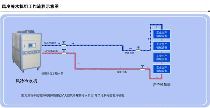 4、風冷系列無需配置冷卻水塔及冷卻水泵,安裝簡單,移動方便,適合生產場地比較緊缺的環境使用;